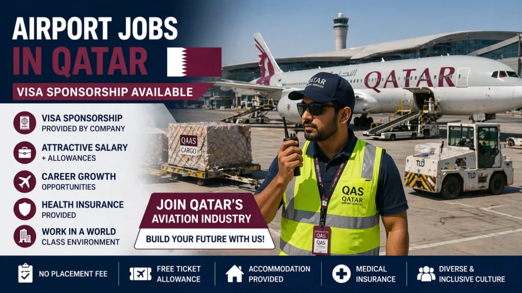 Airport jobs in Qatar with visa sponsorship in 2026 provide excellent opportunities for foreign workers seeking employment in a dynamic and growing industry. With increasing passenger traffic, expanding airline operations, and high service standards, the demand for airport staff continues to rise.