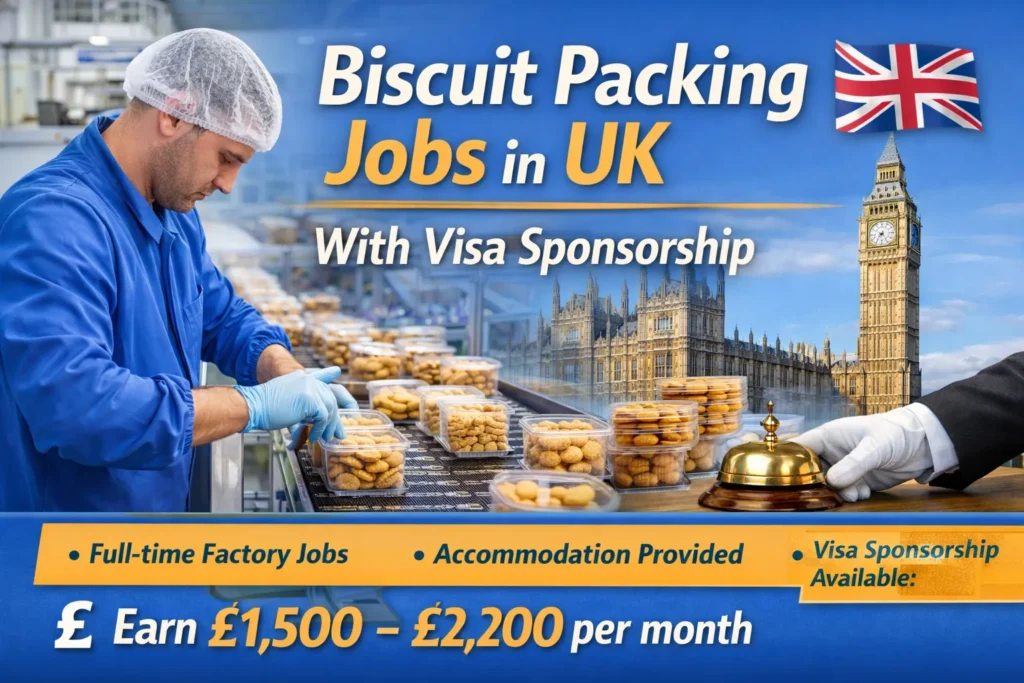 Biscuit packing jobs in the UK with visa sponsorship in 2026 offer a great pathway for foreign workers to secure legal employment, earn a steady income, and gain experience in the food manufacturing sector. These roles are especially suitable for individuals looking for low-skilled or semi-skilled jobs with minimal entry requirements.