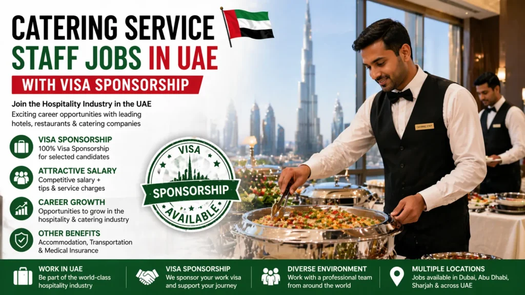 Catering service staff jobs in the UAE with visa sponsorship in 2026 provide an excellent opportunity for foreign workers looking to enter the hospitality industry. With increasing demand driven by tourism, events, and global business activities, these roles offer stability and career growth.