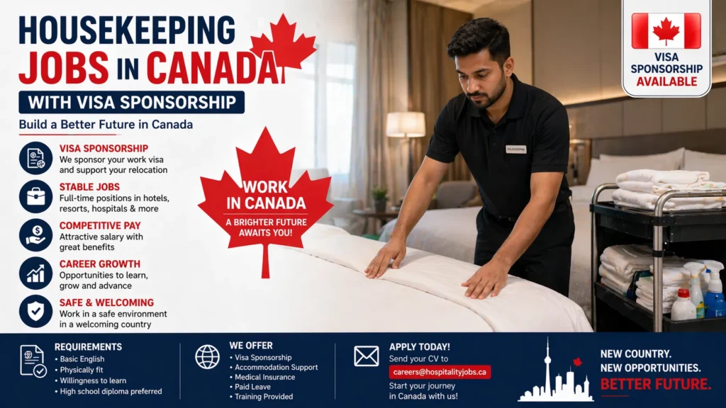 Housekeeping jobs in Canada with visa sponsorship in 2026 provide a practical opportunity for foreign workers to start a career abroad. With steady demand across hospitality, healthcare, and residential sectors, these roles offer stable employment and valuable experience.