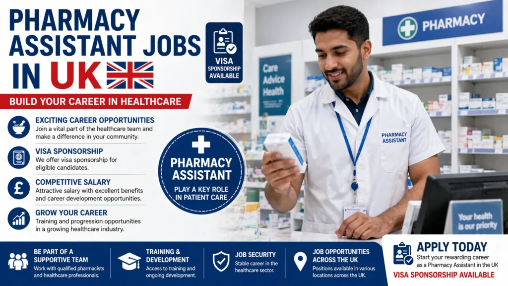 Pharmacy assistant jobs in the UK with visa sponsorship in 2026 provide an excellent opportunity for foreign workers interested in the healthcare field. With growing demand, structured career paths, and the chance to gain valuable experience, these roles offer both stability and growth.