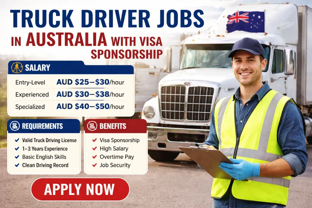 Truck driver jobs in Australia with visa sponsorship 2026 provide excellent opportunities for foreign workers seeking high-paying and stable careers abroad. With strong demand in logistics, construction, and mining sectors, Australia continues to welcome skilled drivers from around the world.